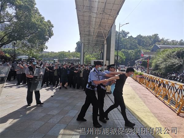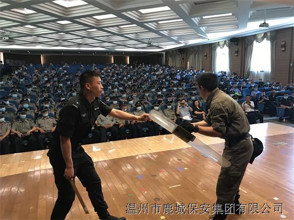 随后,全体人员观摩了温州市马鞍池小学保安防暴恐处突演练。“歹徒”翻越大门进入学校,保安人员发现后第一时间按响“一键式”报警器,连续大声呼叫,告知全体教职员工有非法分子进入幼儿园,情况紧急,随即,保安人员密切配合,使用盾牌和钢叉将“歹徒”制服,随后赶到现场的公安民警将“歹徒”带走。通过演练 使每位保安人员明白提高安保人员反恐防暴能力的必要性和防患于未然的紧迫性。