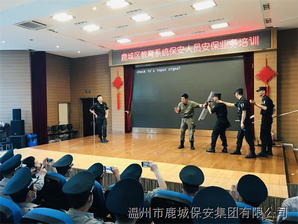 为切实提升校园安保人员的安全防范意识和职业技能水平以及应急处置能力,筑牢校园保卫安全防线。5月9日,温州市鹿城保安集团联合鹿城区教育局在温州市马鞍池小学开展校园安保人员专项培训会。鹿城区教育局副局长林月嫦、保卫科科长陈梵,鹿城保安集团副总经理金岩永,保安公司相关部门管理人员以及来自鹿城区200多所学校的近600余名保安人员参加了此次专项培训。本次培训特邀区特巡警大队教官亲临现场指导。