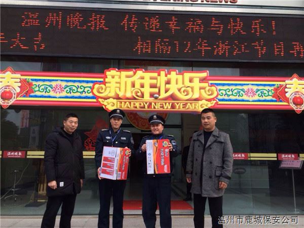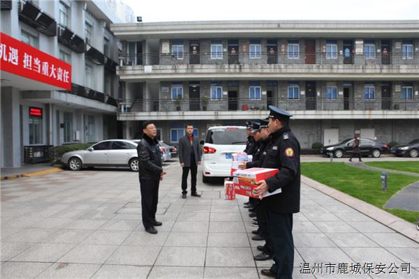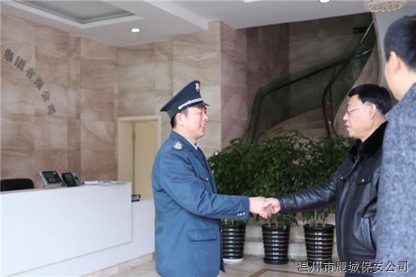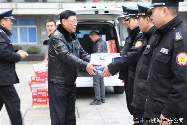 1月28日(初一)上午,正值新年第一天,鹿城保安公司总经理齐建华、副总理金岩永、工会主席胡锦杰、办公室及部门负责人分赴现代集团、鹿城区区府、温州晚报、温州书城等单位,对坚守在岗一线保安员进行走访慰问。