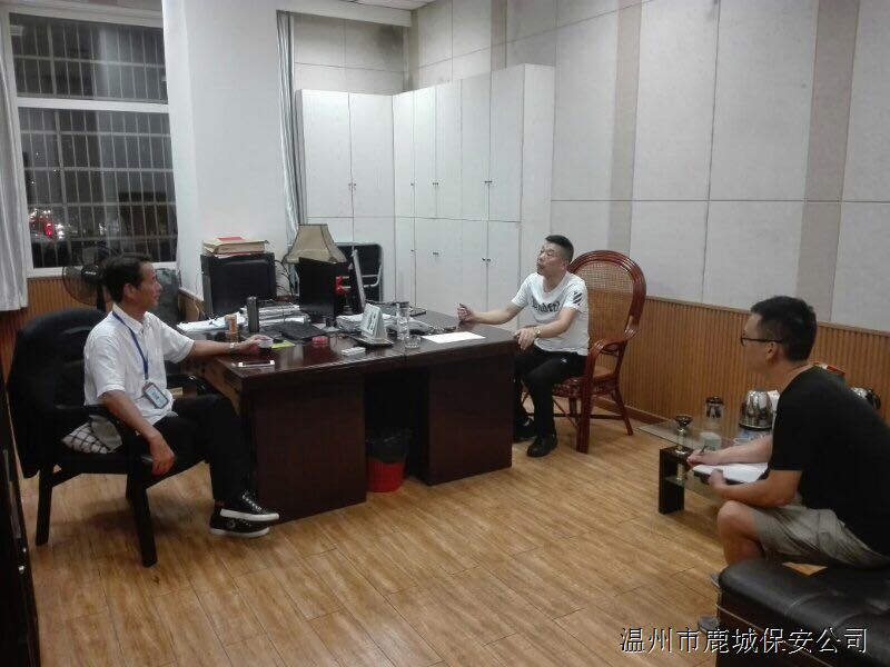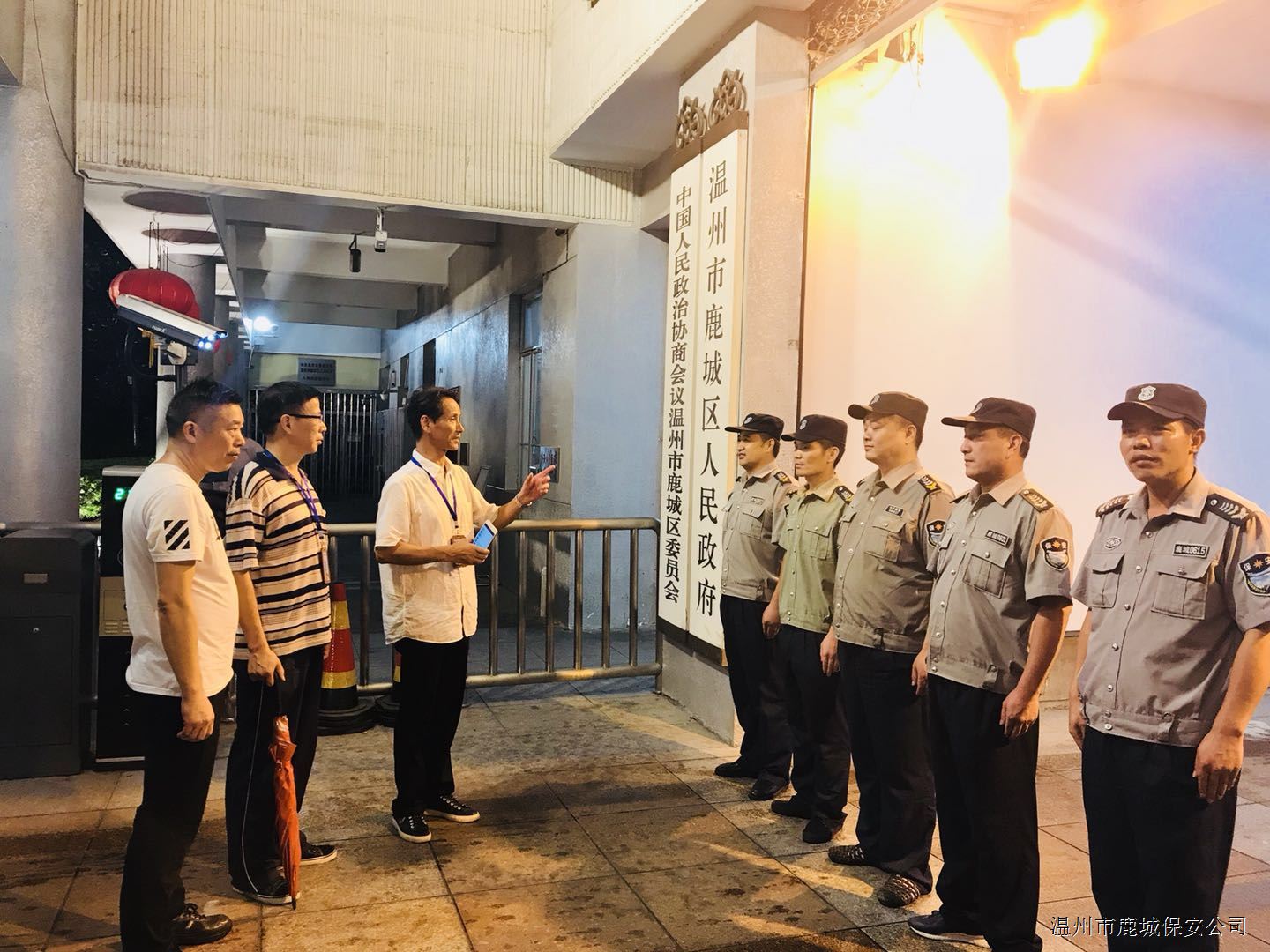 会后,由温州市鹿城区物业管理总公司朱祖武副总经理、鹿城保安公司金岩永副经理和保安部负责人带队,连夜对区府、监控中心、审批中心、青少年活动中心等十多处一线岗位进行防台、抗台检查指导工作。在巡查中反复向队员们强调,思想上要高度重视,要提高防台救灾意识,坚决克服各种麻痹、侥幸思想,全力以赴、扎扎实实地做好各项防台工作,确保生命、财产安全。