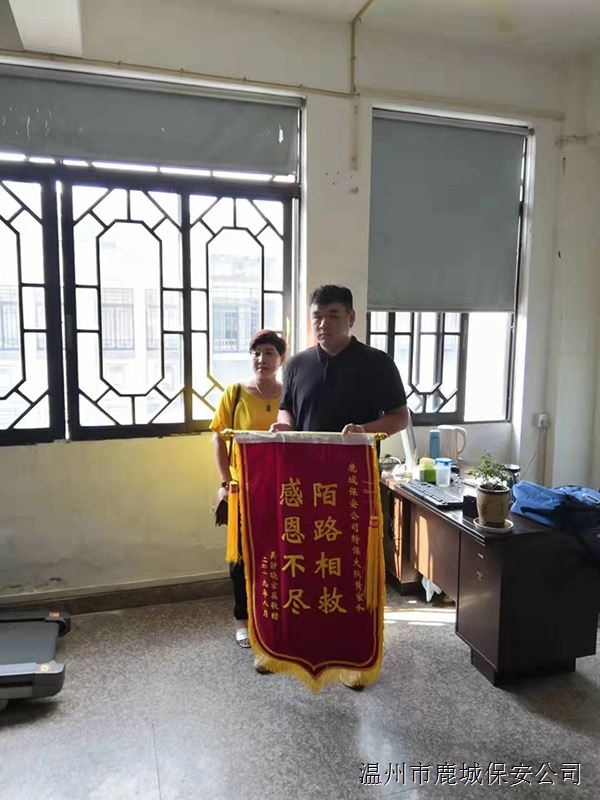 2019年8月6日上午9时,市民钱女士来到鹿城保安公司送来一面锦旗,从钱女士激动的讲述中,我们得知了事情的原委:钱女士的丈夫吴建青8月2日晚上21点50分骑电动车在鹿城区黎明路与民航路的交叉口处不慎摔倒在地,头部大量出血,身体动弹不得,神志渐渐不清,生命垂危。值此危难之际,路过此地的我公司安保队员黄家和毅然施以援手,该队员迅速拨打“120”,在保护现场的同时,运用急救知识对伤员进行抢救处置,效果良好。在医务抢救人员到来后,他又在抢救车前开路,一直护送伤员到温州市医学院附二医院,并送其进绿色通道争取赢得宝贵的抢救时间。同时及时与伤员家属联系。由于送医及时,治疗给力,该伤员已脱离危险,目前身体正在逐步康复之中。