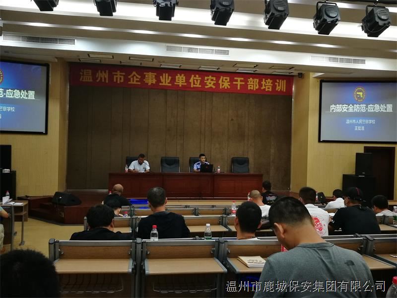 为进一步加强单位内部治安保卫工作,增强防范化解风险能力,结合市局“六重清单”任务内容和社会治安防控体系标准化城市建设相关标准要求,温州市鹿城保安集团有限公司应温州市公安局要求,于8月5日指派区府直属保安大队参加温州市公安局2020年全市治安保卫重点单位安保力量练兵比武活动的企事业单位安保干部培训。