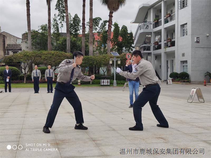今年1月份以来,温州市鹿城保安集团驻鹿城区机关事务管理中心保安直属大队一直坚持每周两次的训练(学习),内容包括思想教育、职业道德教育、基础队列训练、擒拿格斗、反恐反爆、盾牌操、现场抓捕模拟演习等项目。经过年初“疫情”的洗礼和考验,队伍整体能力得到进一步提升。为贯彻落实“平安大院”的建设要求,也为检验直属大队保安训练成效,同时为下个月的反恐反爆大演练打下基础,公司联合区机关事务局开展区府直属大队安保技能大比武活动。鹿城区机关事务管理中心陈维新主任、副主任张于进、中心办公室副主任周兵,保卫科科长林建以及公司副总经理金岩永等人亲临现场检阅。