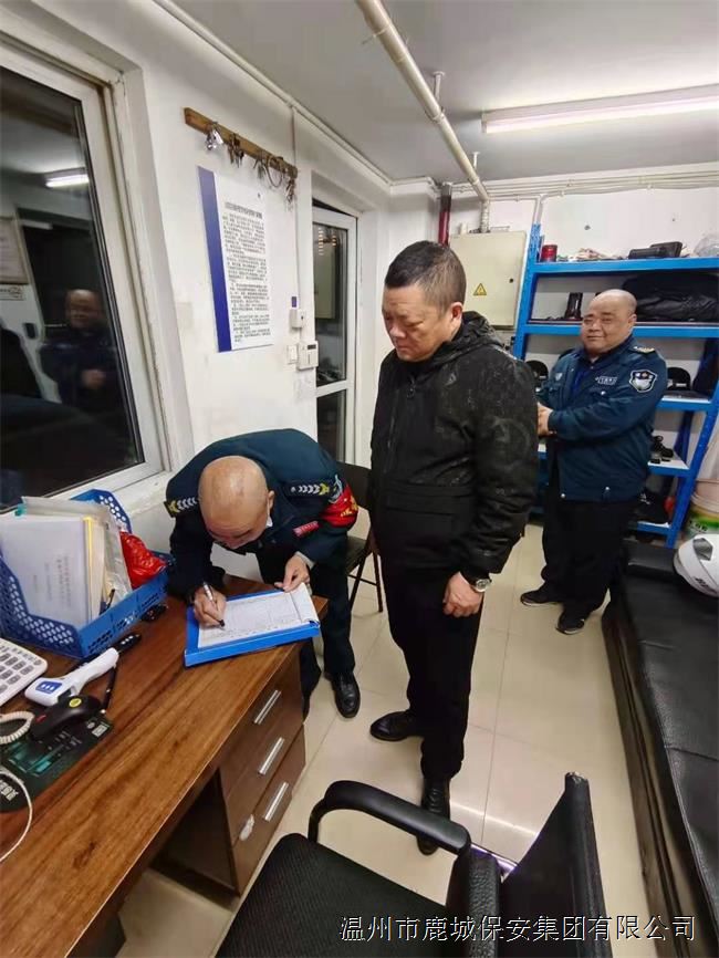 相较于白天,夜间的保卫工作对一线保安员提出了更高的岗位要求,同时也存在着更多的安全隐患,针对这一特点,鹿城保安集团坚持安全督查制度,定期对派驻客户单位的保安员进行现场督察,优化夜间安保服务质量,提高客户单位的满意度。