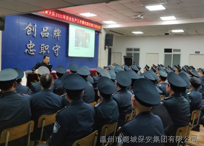 为认真贯彻上级有关部门关于安全生产工作会议精神,进一步强化校园安全意识,为师生提供安全和谐的校园环境。鹿城保安集团教育大队于3月20日、21日两天,分批在公司本部二楼召开安全生产工作会议暨校园安保工作会议,各驻校保安员共计300余人参加本次工作会议。会议由鹿城保安集团安保部副经理杨署光主持。
